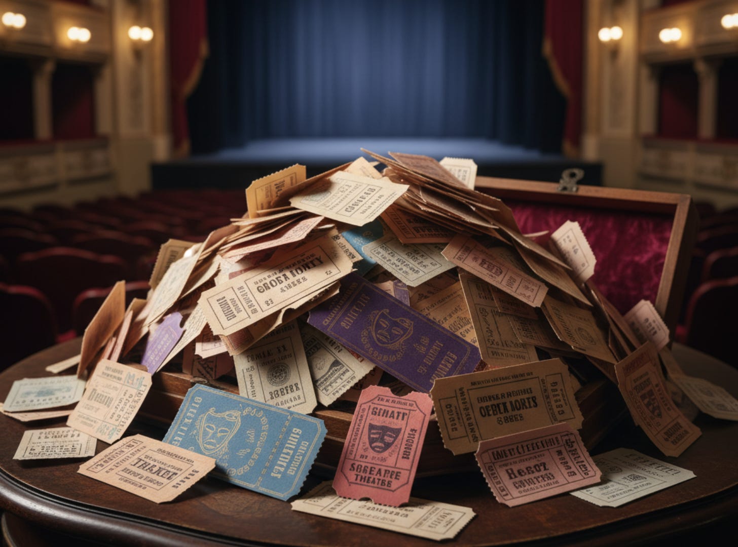 Some decades ago, I worked at a theatre in Sydney. One or two times a year, we would order ticket stock - the blank ticket rolls that then would feed through the ticket printers in the box office when someone could come in to buy seats for a show.