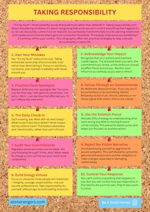 Here are ten practical strategies for developing genuine accountability without falling into blame or martyrdom.